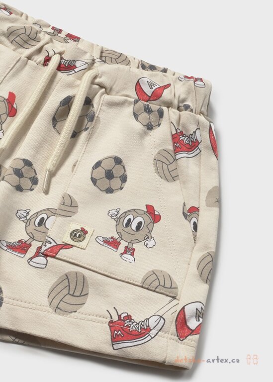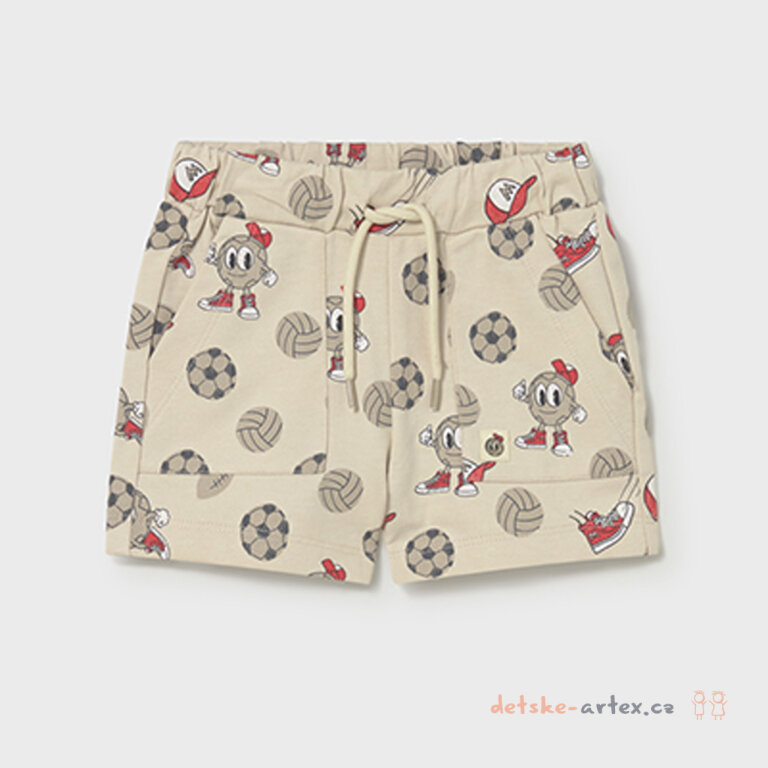 Veselý potisk míčů a smajlíků v teniskách dodává bavlněným kraťasům Mayoral 1218-61 hravý a originální vzhled. Díky pohodlnému pasu do široké pruženky s možností dotažení provlečenou šňůrkou jsou kraťasy skvěle přizpůsobivé a zajišťují dětičkám komfort během celého dne. Praktické dvě boční kapsy poskytují dostatek místa na drobnosti. Vyrobeny ze 100% bavlny šetrné k dětské pokožce.