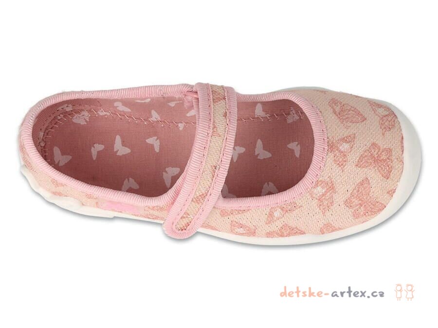 Befado Blanka balerínky se třpytem a obrázky motýlků, to jsou pohodlné přezůvky na doma, do školky i školy.