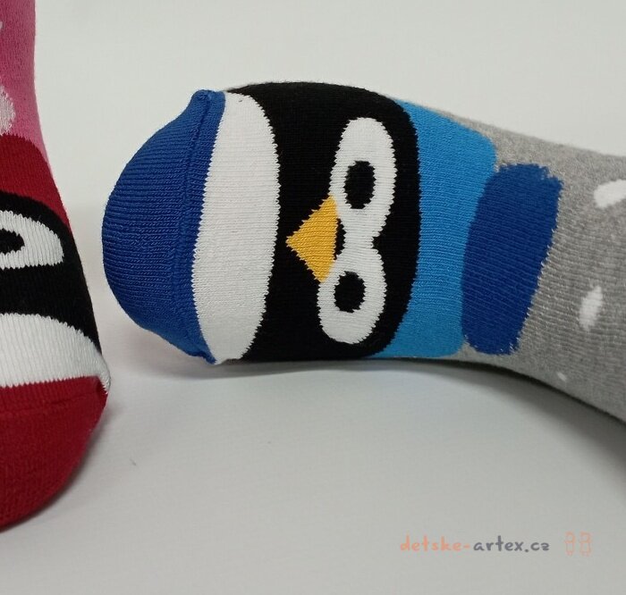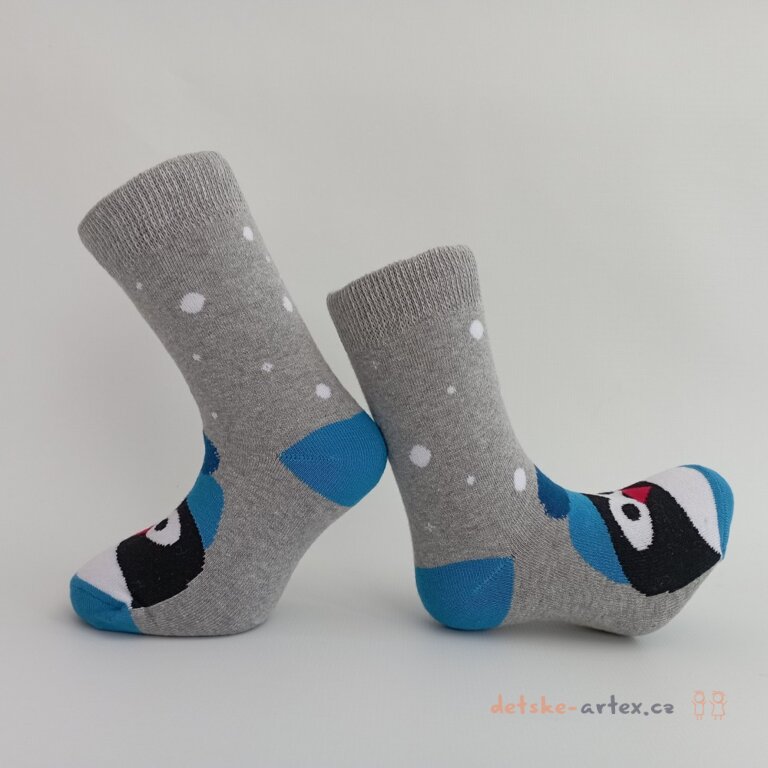 Dětské zimní teplé termo ponožky s tučňákem, hebké froté uvnitř, pohodlné, elastické, hřejivé, kvalitní česká výroba.