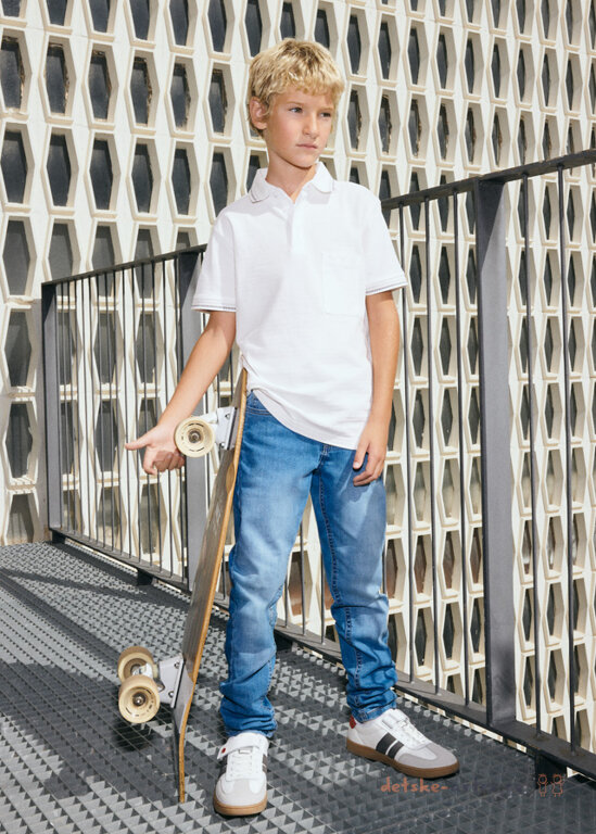 Chlapecké slim fit džíny Mayoral 538-38 jsou navrženy pro štíhlejší chlapce i klasickou postavu. Tyto pružné rifle z basic kolekce módního oblečení Mayoral nabízejí komfort díky preciznímu střihu slim fit a elastickému materiálu.