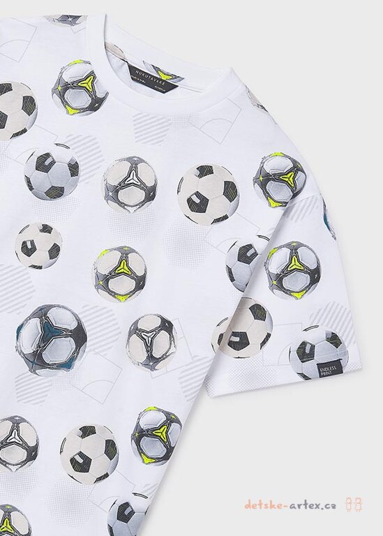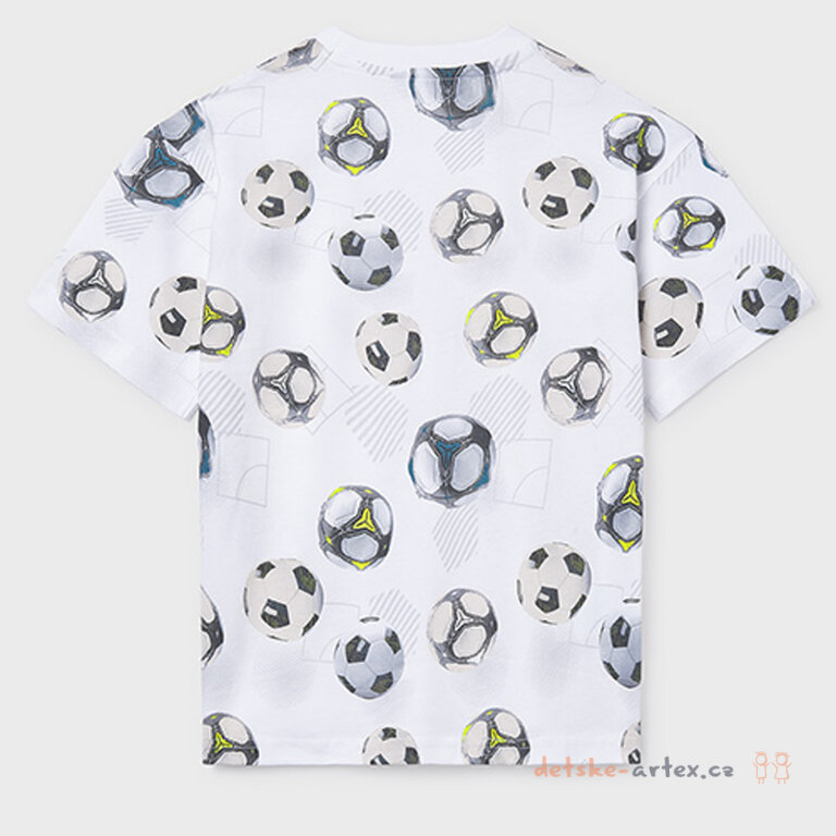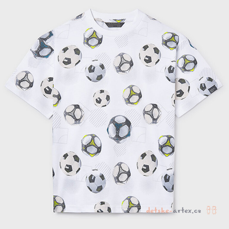 Chlapecké triko Mayoral ze 100% bavlny s originálním potiskem míčů, ideální pro sportovní a volnočasové aktivity.