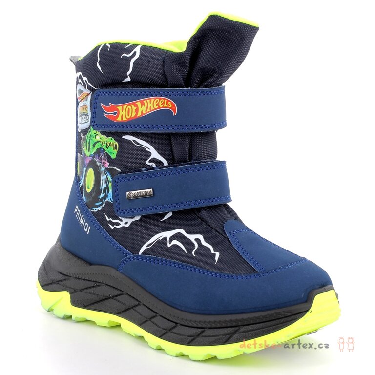 Chlapecké zimní boty Primigi 8893900 jsou ideální volbou pro aktivní děti, které potřebují spolehlivou obuv do chladného a vlhkého počasí. Boty jsou vybaveny nepromokavou Gore-Tex membránou, zajišťují dokonalou ochranu proti vlhkosti a zároveň umožňují noze dýchat. Podešev je vhodná do každého terénu poskytuje skvělou přilnavost a stabilitu na sněhu. Špice boty je chráněná proti okopu, takže vydrží i náročné dětské zimní hry. Design doplňuje oblíbený Hot Wheels obrázek na boku, který potěší fanoušky této značky.