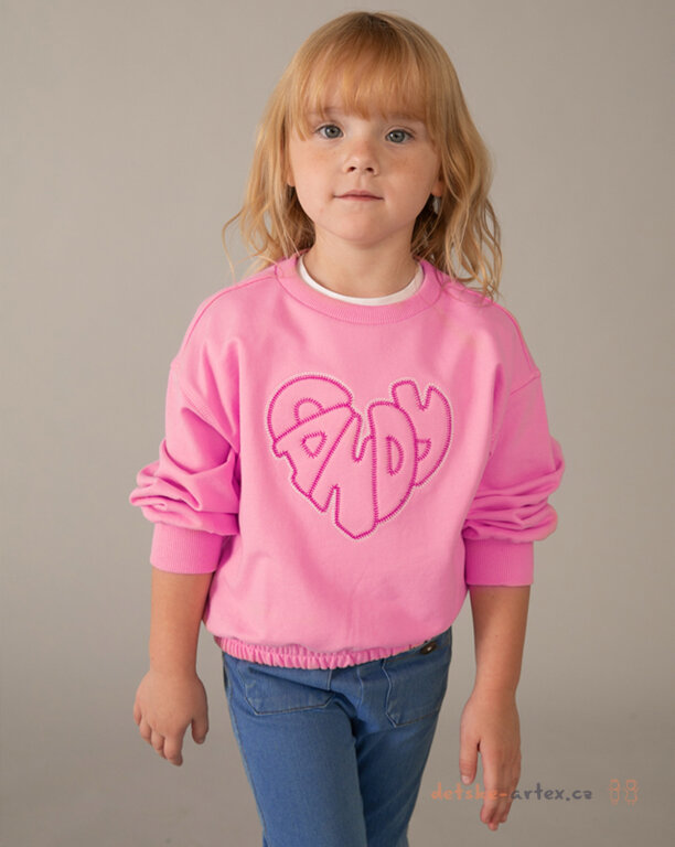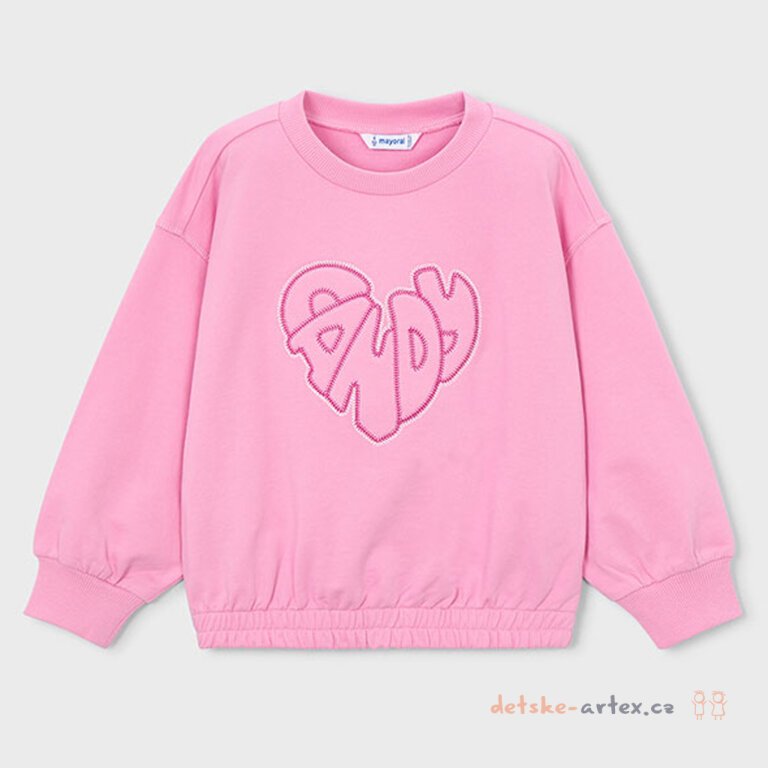 Dětská mikina Mayoral 3449-16 je stylový kousek v růžové barvě, který zaujme především designem s výrazným vyšitým nápisem candy. Mikina má volnější moderní střih, který zaručuje pohodlí při nošení a zároveň trendy vzhled. Dole je mikina stažena do široké pruženky, což jí dodává na praktičnosti a zajišťuje lepší přilnutí k tělu. Tento kousek je ideální pro každodenní nošení a skvěle doplní šatník každé malé slečny.