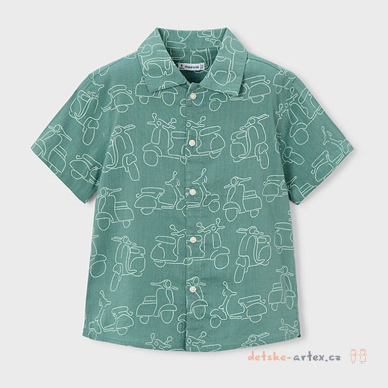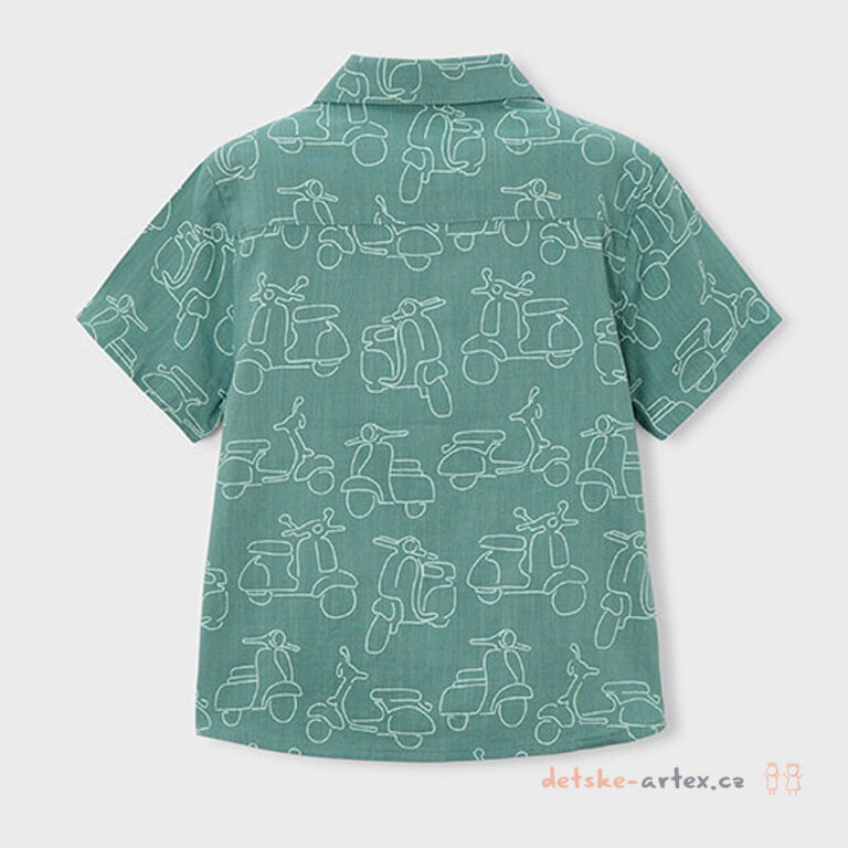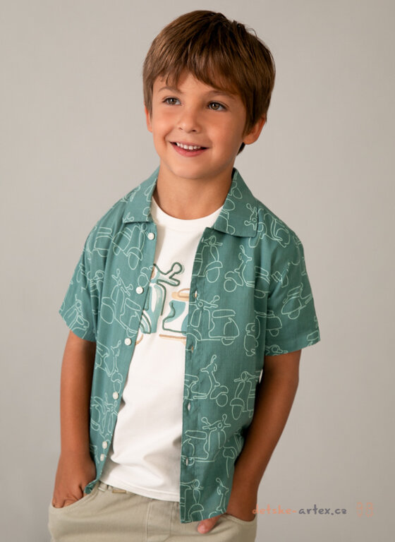 Dětská letní košile s obrázky skútru Mayoral 3115-26 je ideální volbou pro všechny malé milovníky pohodlí a stylu. Košile je vyrobena z lehkého a vzdušného materiálu, kombinujícího bavlnu a viskózu, která zajistí komfort i během teplých letních dnů.