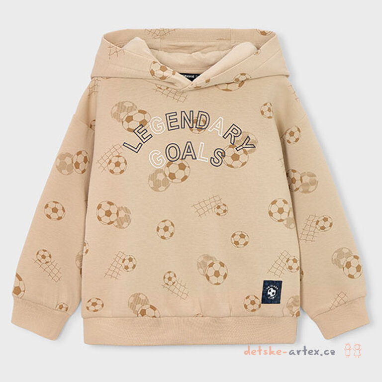Dětská mikina s kapucí Mayoral 3435-71 je vyrobena z vysoce kvalitní pleteniny interlock, která zaručuje příjemný pocit při nošení a odolnost materiálu. Mikina je vybavena praktickou kapucí, která ochrání před větrem nebo chladem. Ideální pro malé fanoušky fotbalu, kterým nabízí pohodlí i styl v jednom. Díky svému provedení je vhodná na každodenní nošení i na sportovní aktivity.