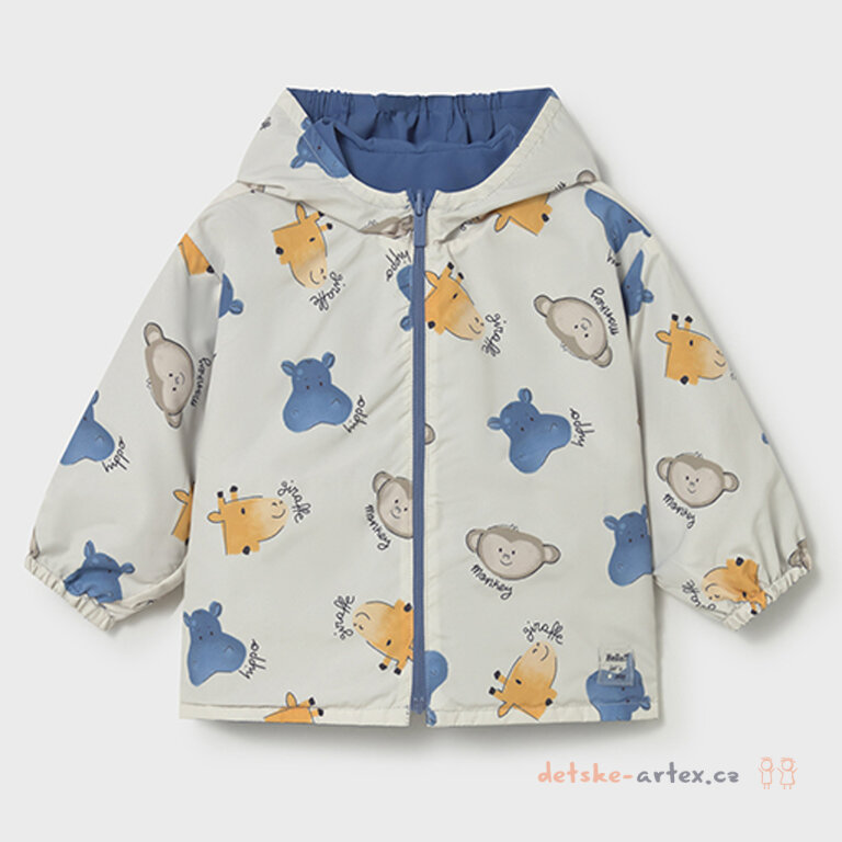 Dětská oboustranná bunda s kapucí Mayoral 1410-96 je praktickým kouskem do každého dětského šatníku. Z jedné strany nabízí krásnou modrou barvu, zatímco z druhé strany je béžová s roztomilými motivy zvířátek, které potěší každé dítě. Bunda je vybavena zipem u krku s krytím proti škrábání. Navíc má kapsy po stranách na modré straně, které jsou ideální pro uložení drobností. Tento model je ideální volbou pro ochranu proti větru i chladu a zároveň dětem přináší stylový vzhled a praktičnost od jara do podzimu.