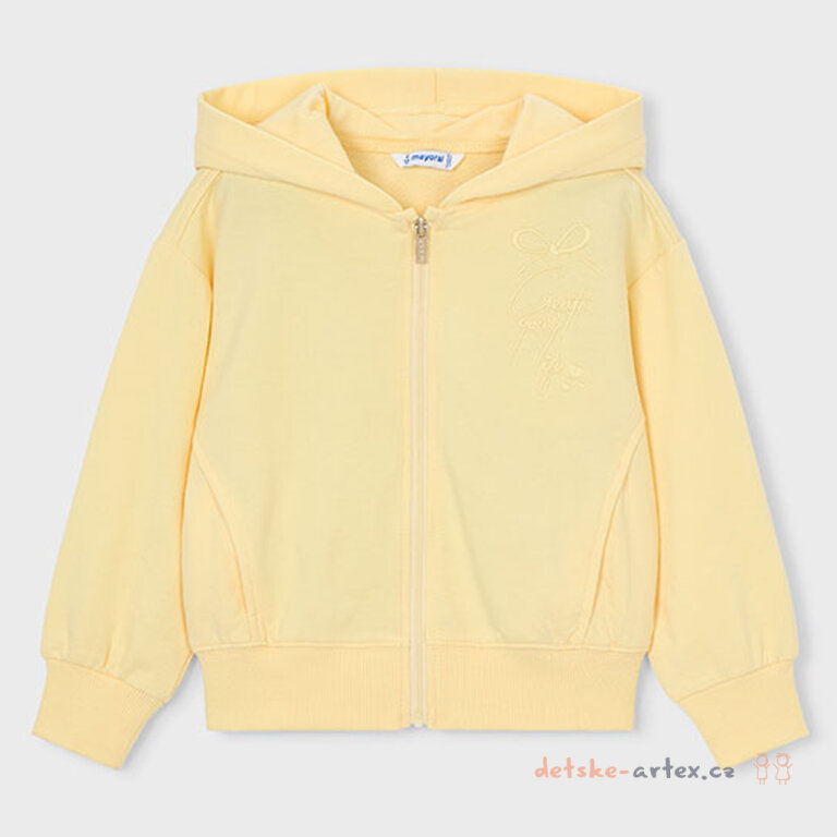 Dětská slabá mikina na zip s kapucí Mayoral 3457-40 se nejlépe hodí pro jarní a letní dny. Mikina je vybavena praktickým zipem po celé délce. Stylový design ve žluté letní barvě zdobí jemný vyšívaný motiv na přední straně.