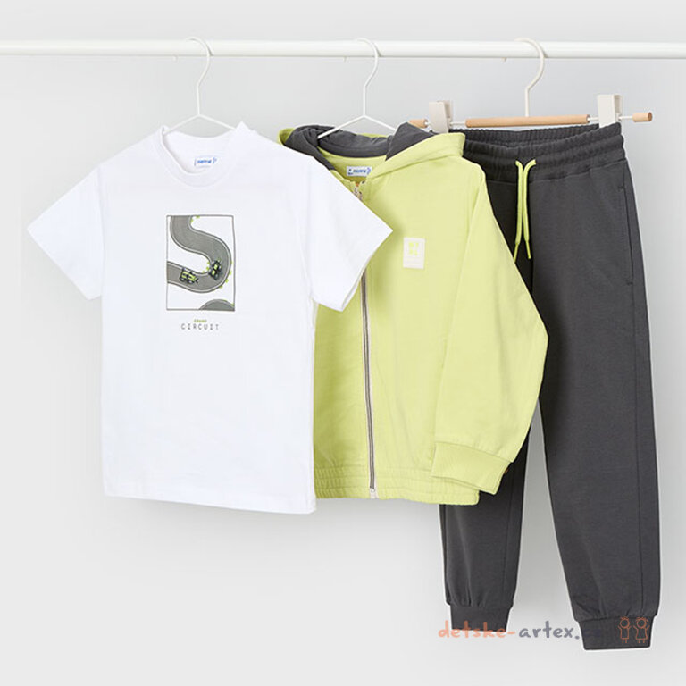 Dětská tepláková souprava s bílým bavlněným tričkem Mayoral 3884-70 nabízí stylové a pohodlné oblečení pro každodenní nošení. Souprava je vyrobena z kvalitních materiálů, které zajišťují dlouhou životnost a komfort při pohybu.