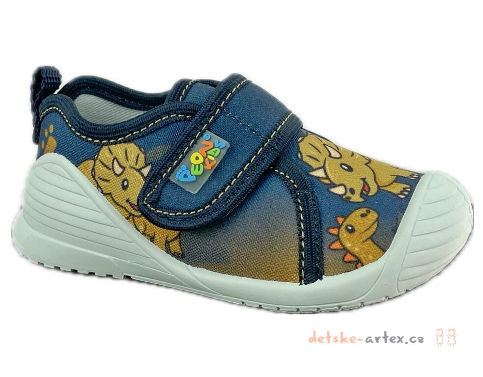 Dětské bačkory Peon kids s motivem dinosaurů jsou navrženy s ohledem na pohodlí a zdraví dětských nožiček. Disponují velice pružnou podrážkou, která umožňuje přirozený pohyb a přispívá ke správné chůzi. Bačkory mají zpevněnou patu a kulatou špici chráněnou proti okopu, což zajišťuje dlouhou životnost i při aktivním používání. Lehoučké přezůvky jsou vhodné i pro děti s vysokým nártem, takže obuv perfektně sedí na různé typy nožiček.