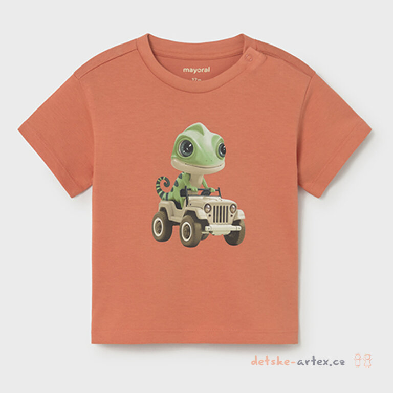 Dětské 100% bavlněné tričko Mayoral s krátkým rukávem a veselým obrázkem chameleona.