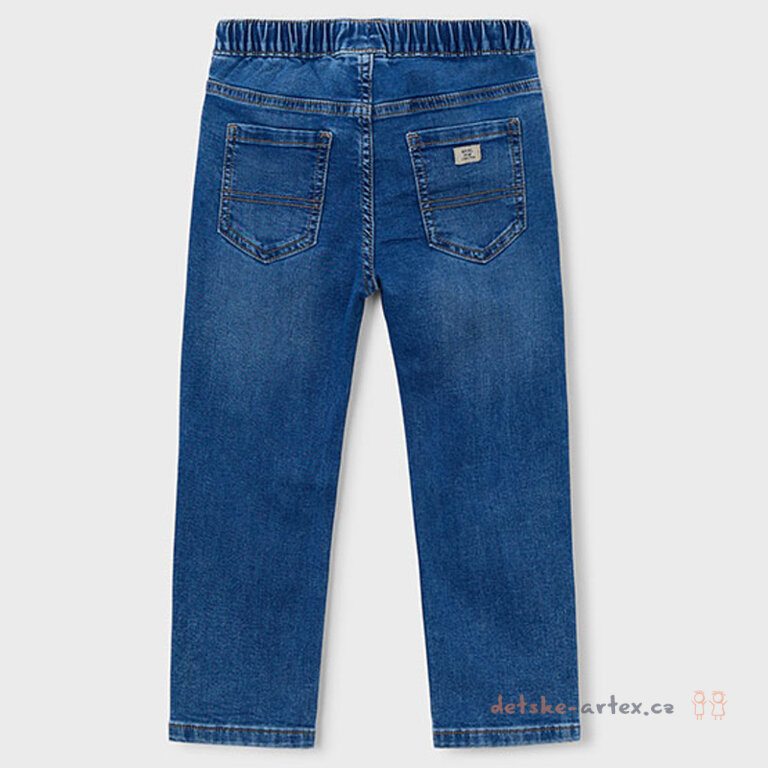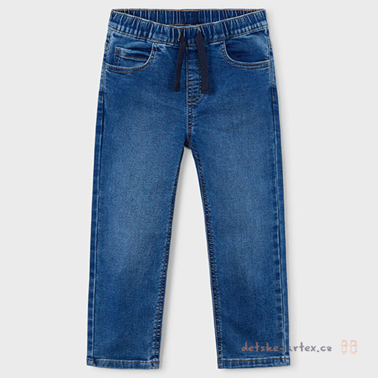 Dětské džíny v pase na gumu Mayoral 3579-27 jsou vyrobeny z příjemného měkkého riflového materiálu, který zajišťuje pohodlí během celého dne. Absence zapínání umožňuje snadné oblékání a svlékání, což ocení nejen děti, ale i rodiče. Pružný pas do široké elastické gumy se šňůrkou zajišťuje perfektní přizpůsobení a možnost dotažení podle potřeby. Díky osvědčenému střihu jogger tento model nabízí kombinaci stylu a komfortu vhodnou pro každodenní nošení.