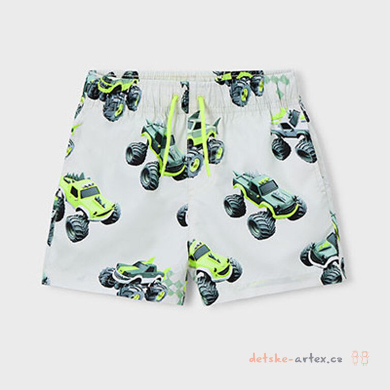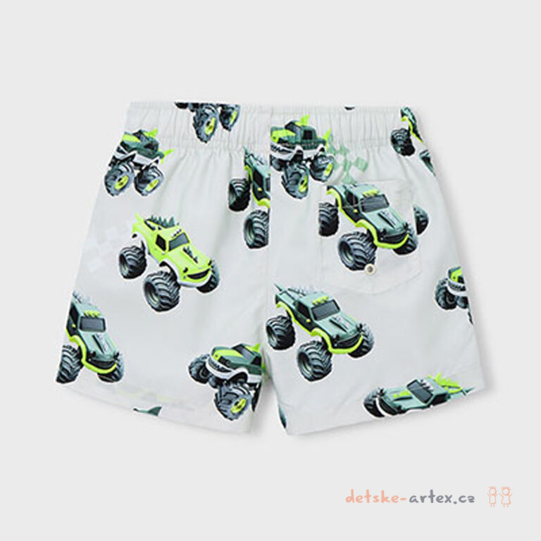 Dětské koupací šortky Mayoral 3612-84 jsou ideální volbou pro malé milovníky vody i monster trucků. Pas je vybaven pružnou gumou, která zajišťuje pohodlné a pevné přilnutí a díky šňůrce lze pas snadno doladit přesně na míru. Tyto šortky se všitými síťovanými slipy jsou vyrobeny z kvalitního materiálu, který rychle schne a je příjemný na dotek, což ocení rodiče i děti.
