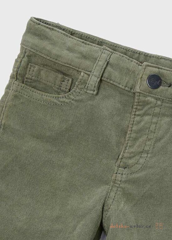 Dětské manšestrové kalhoty Mayoral 571-44 v zelené olivové barvě jsou vyrobeny z jemně proužkovaného manšestru, který zajišťuje komfort a odolnost zároveň. Pružný materiál umožňuje dětem volný pohyb a pohodlí během celého dne. Kalhoty jsou ideální volbou na období od podzimu do jara díky svým tepelným vlastnostem. V pase je možné velikost upravit pomocí pruženky z rubové strany, což zaručuje perfektní padnutí. Tyto kalhoty kombinují styl, praktičnost a pohodlí v jednom kousku dětského oblečení.
