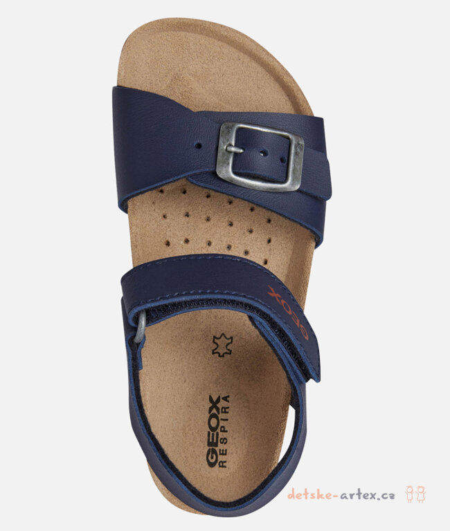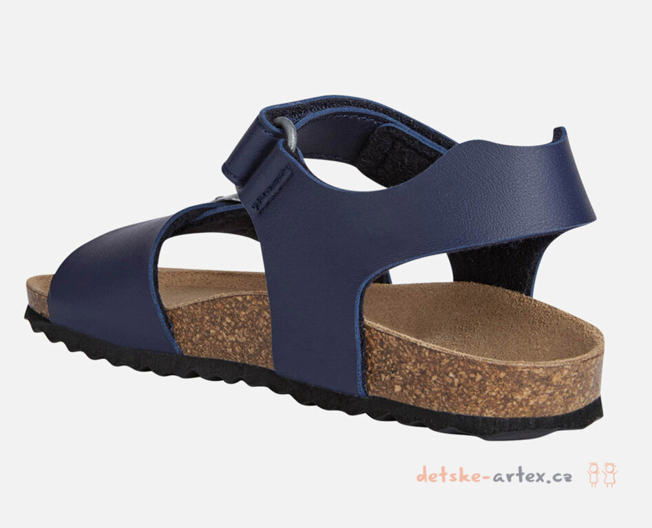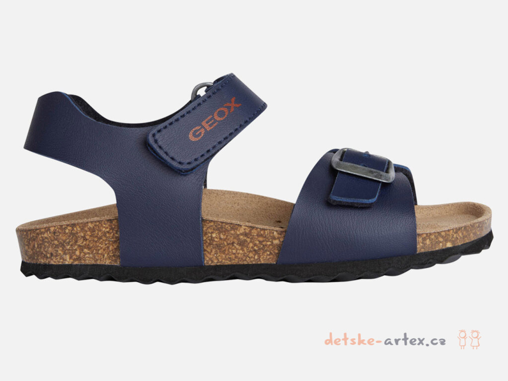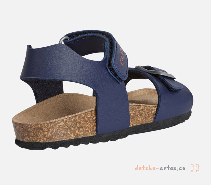 Dětské zdravotní sandály Geox tmavě modré s korkovou podešví a koženou stélkou pro maximální komfort a prodyšnost.