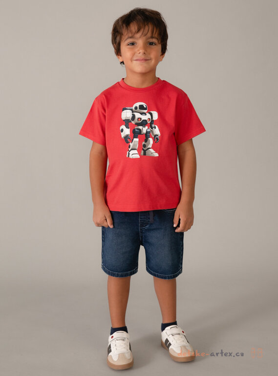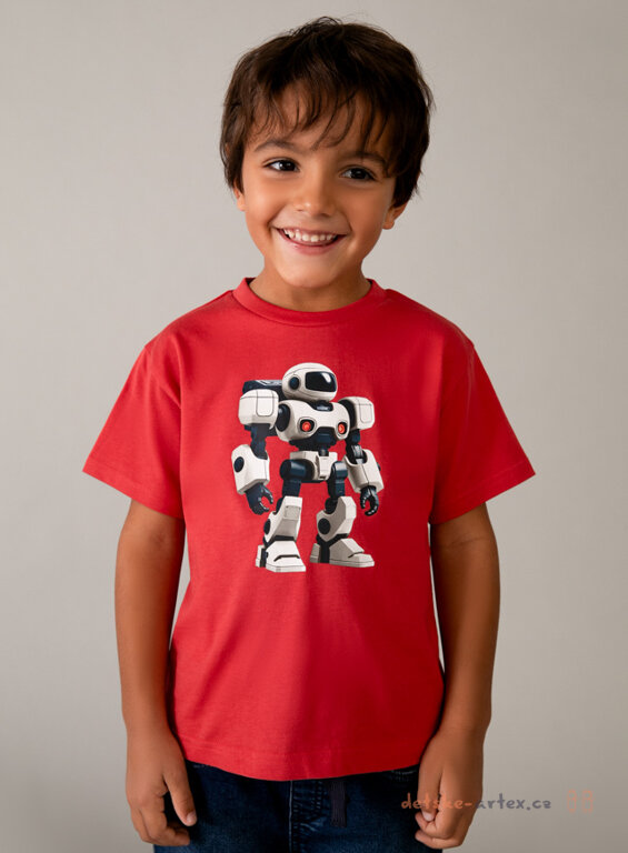 Dětské červené tričko s robotem, 100% bavlna, pohodlné, prodyšné a kvalitní.