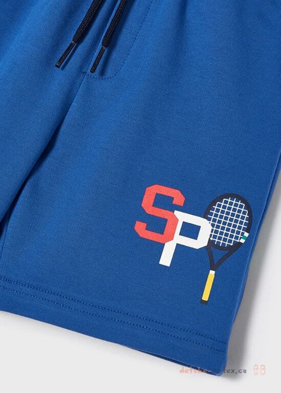 Dětská tepláková souprava a teplákové kraťasy, to vše s tenisovým motivem. Mikina na zip s kapucí, tepláky do nápletu s extra odolnými koleny a teplákové kraťasy od dětské značky Mayoral.