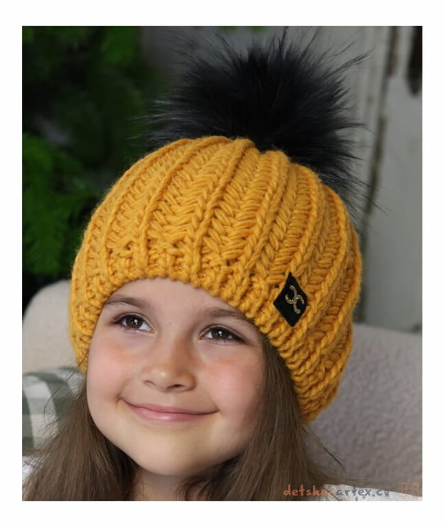 dívčí čepice zimní s kožešinovou bambulí Marika 58D