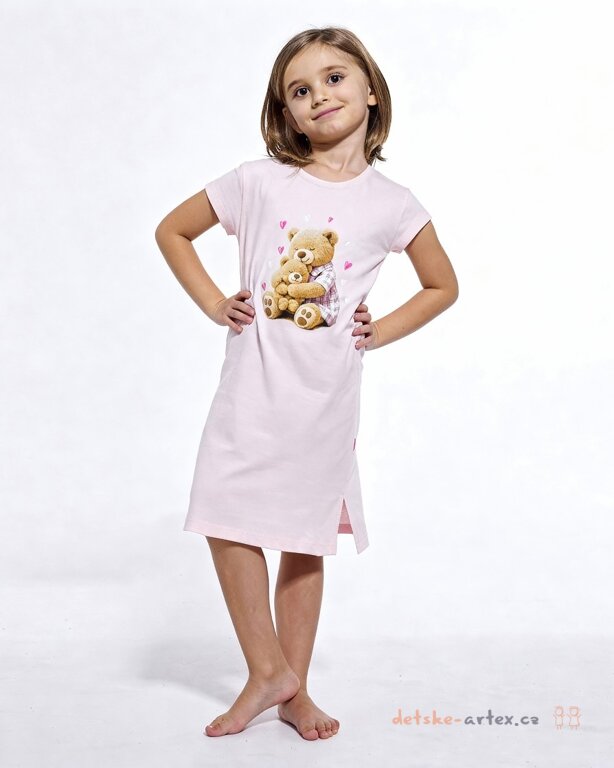 Dívčí letní růžová noční košile ze 100% bavlny s něžným motivem medvídků je pohodlná a kvalitní.