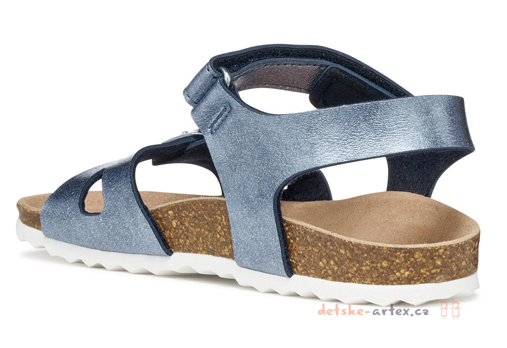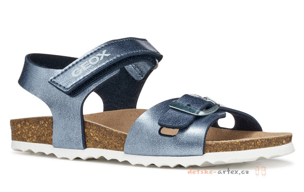 Další výhodou je kožená stélka s mikropóry a perforovaná podešev pro snadnou absorpci a odvod potu. Originální kovový metalický design a kvalita italského výrobce Geox spojují funkčnost a styl do jednoho, což z těchto sandálů dělá perfektní obutí pro každou dívku.
