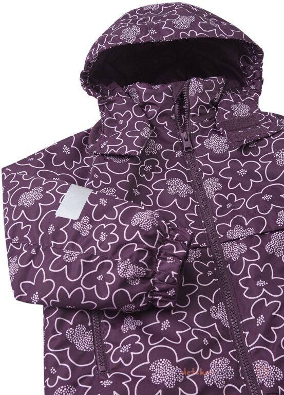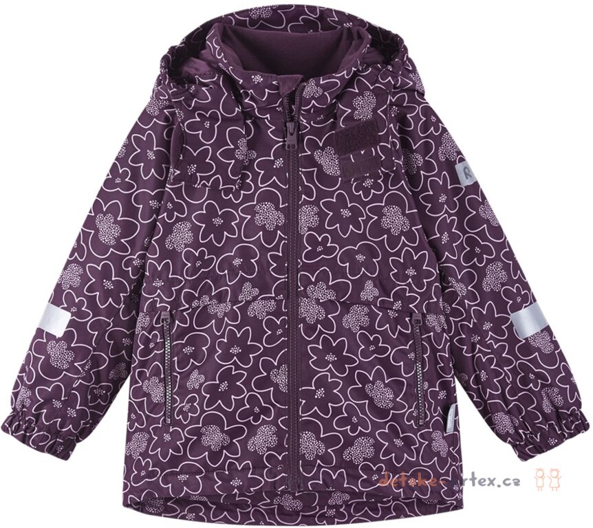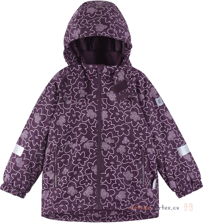 Dívčí membránová zimní bunda Reimatec Muonio je ušita z prodyšného materiálu odolného vůči větru, vodě i nečistotám. Má univerzální rovný střih, zajímavý celoplošný potisk a reflexní prvky. Dále má hladkou polyesterovou podšívku, je zateplená materiálem Fellex a všechny švy jsou podlepené. Má odnímatelnou kapuci, vyšší stojací límec a dvě kapsy na zip. Na předním dílu se po celé délce zapíná na zip s chráničem brady. Zadní díl je prodloužený a spodní lem lze stáhnout. Rukávy jsou zakončeny pružnými lemy. Po vyprání ji lze sušit v sušičce.