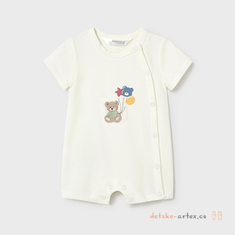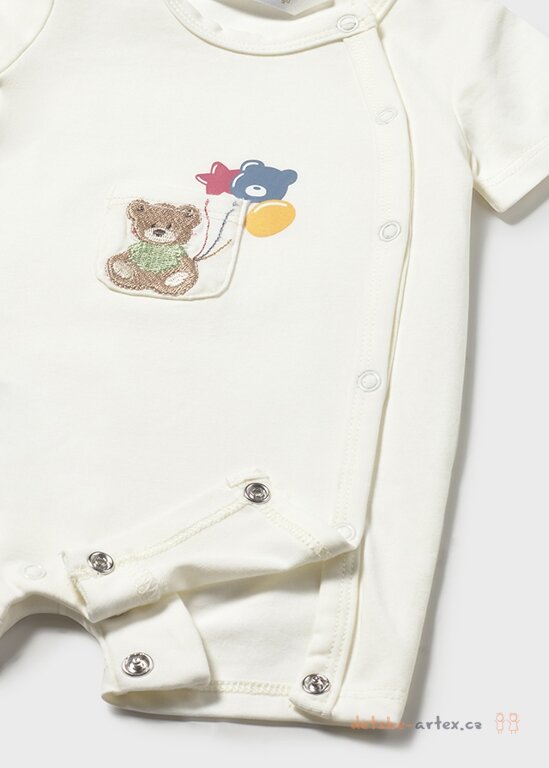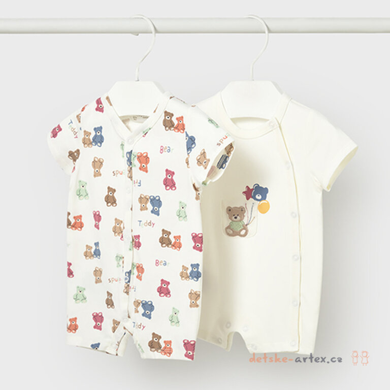 Dva kojenecké krátké overaly s medvídky Mayoral 1719-74 jsou vyrobené z kvalitního materiálu, který zajišťuje pohodlí a měkkost na dotek. Celorozepínací design umožňuje snadné oblékání i přebalování díky zapínání vpředu, po straně i mezi nožičkami. Tyto overaly z kolekce Newborn jsou unisex, vhodné jak pro holčičky, tak pro chlapečky.