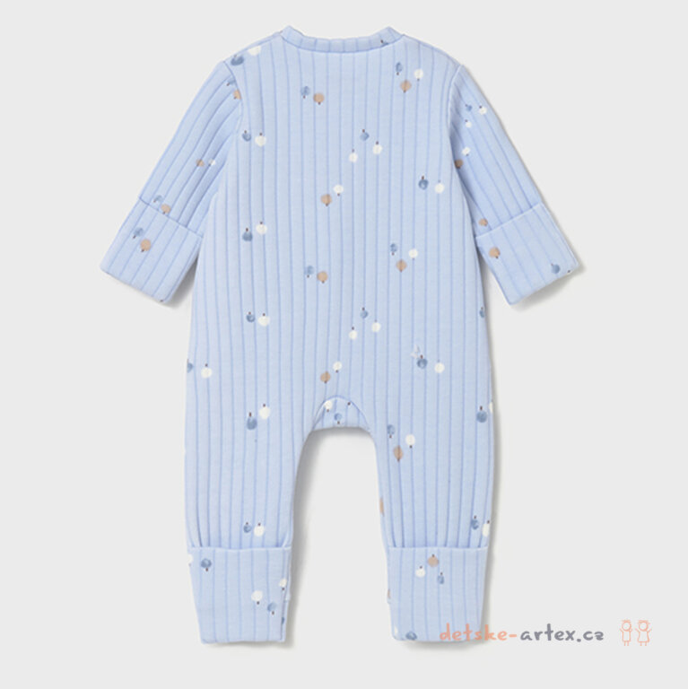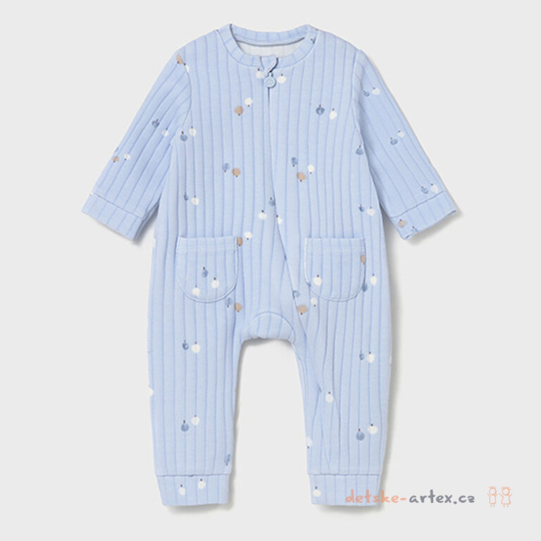 Kojenecký modrý overal Mayoral 2730-48 je praktický a teplejší kousek ideální pro pohodlí vašeho miminka. Krásný jemný design spolu s kvalitou zpracování zaručují styl i praktičnost. Overal se zapínáním na zip až do nohavičky je bez ťapek, ale nabízí možnost přehrnutí konců nohaviček přes nožičky. Konce rukávů lze přehrnout přes ručičky, čímž se zabrání poškrábání nehtíčky a zároveň slouží jako praktické rukavičky. Tento overal spojuje funkčnost a komfort pro vaše nejmenší.