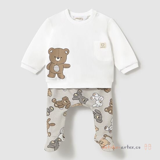 Obrázkový kojenecký komplet se slabou mikinou s obrázkem medvídka a polodupačky ve stejném designu z kolekce Newborn španělské značky Mayoral.