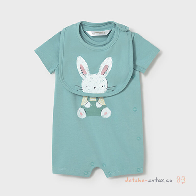 Letní overálek a slintáček Mayoral 1721-16 představuje ideální komplet pro miminka a batolata v teplých měsících. Overálek je celorozepínací, což usnadňuje oblékání i přebalování.