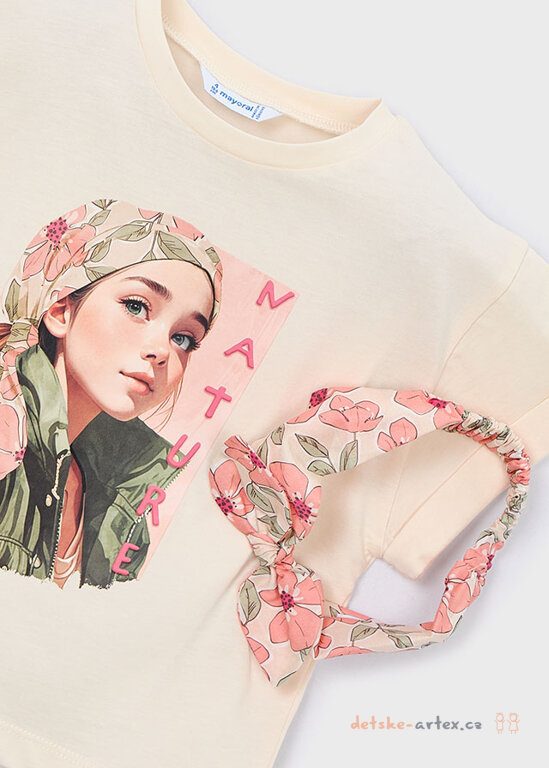 Letní tričko s obrázkem a čelenkou Mayoral 3010-93 je skvělou volbou pro malé módní nadšenkyně. Tričko ve volnějším střihu je vyrobeno ze 100% kvalitní bavlny, která zajišťuje pohodlí a prodyšnost během teplých dnů. Originální moderní potisk dodává letnímu outfitu jedinečný vzhled. Součástí setu je také stylová čelenka ve stejném designu jako tričko, která dokonale podtrhne celkový vzhled a vytváří krásný sladěný set pro letní dny.