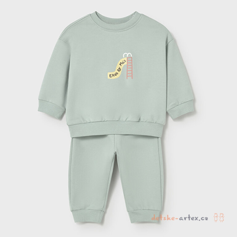 Mentolová bavlněná tepláková souprava Mayoral pro batolata s hravým motivem skluzavky, příjemný nezateplený materiál.