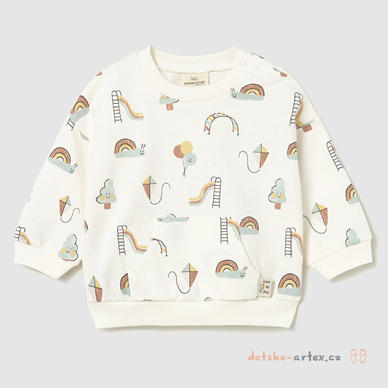 Tato neutrální mikina klokanka s potiskem Mayoral 1487-61 je ideální volbou pro malé děti díky svému jemnému bavlněnému materiálu, který zajišťuje pohodlí a prodyšnost během celého dne. Mikina z kolekce unisex newborn kombinuje stylový, neutrální design v zemitých barvách, který je vhodný jak pro holčičky, tak pro chlapečky.