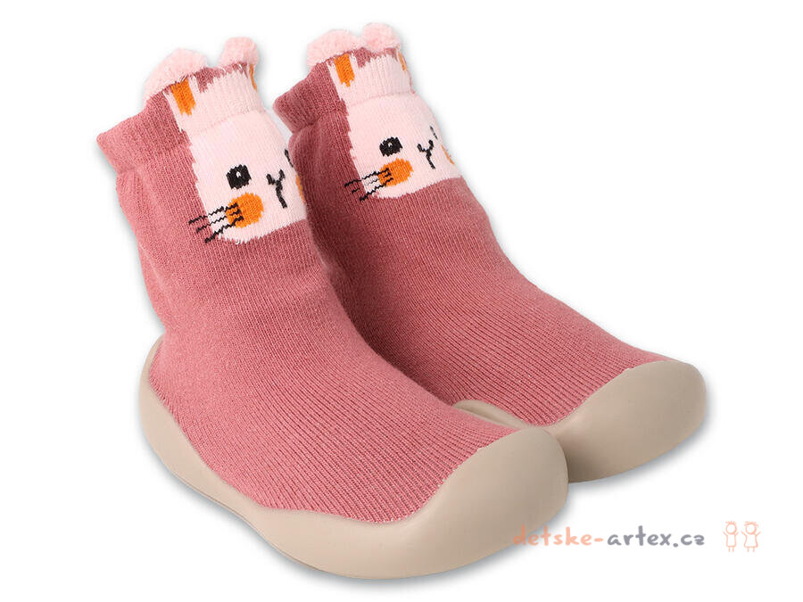 Ponožkoboty pro holčičky s motivem zajíčka, protiskluzové, ochranná okopová špička, ideální na první krůčky.