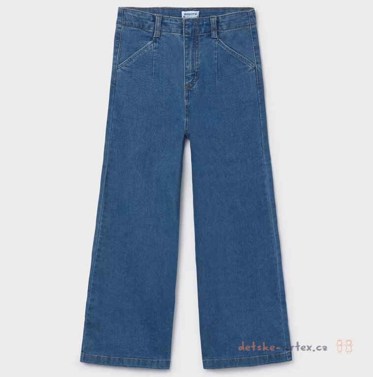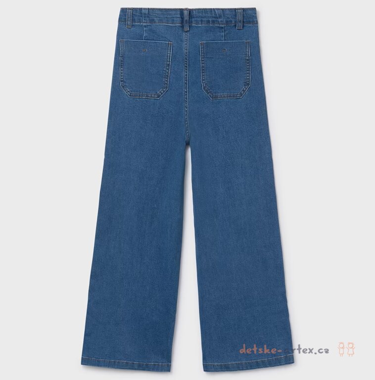 Široké dívčí rifle z pružné džínoviny s upravitelným pasem pro pohodlí a moderní vzhled.