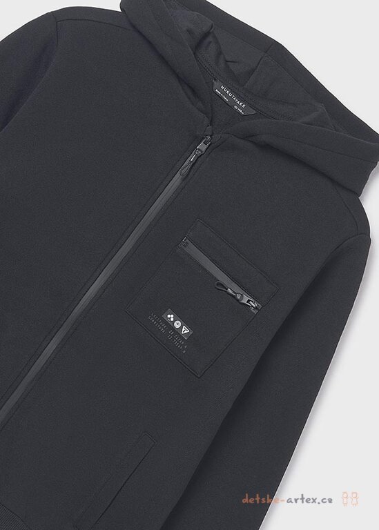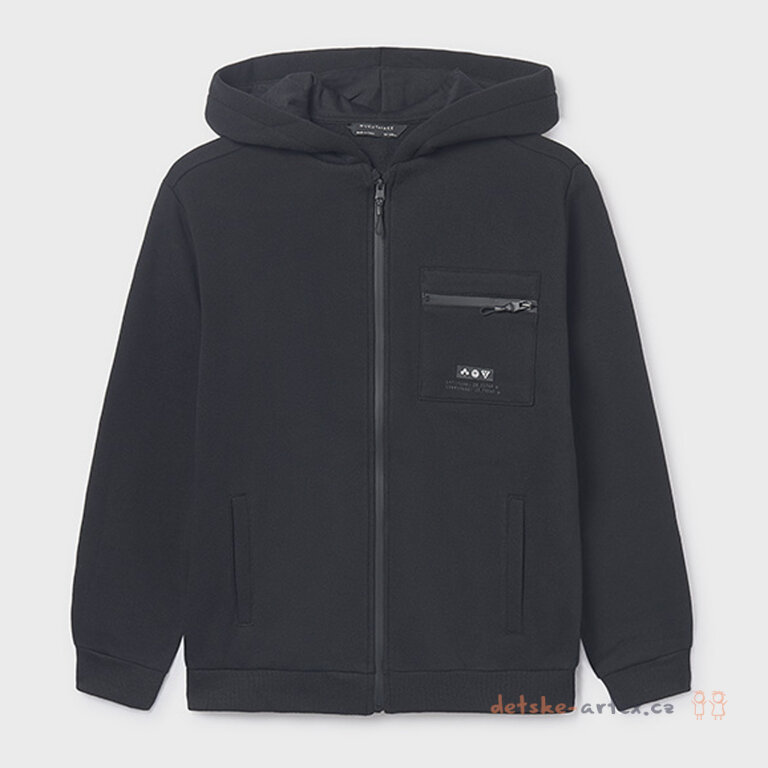 Teplá černá chlapecká mikina Mayoral je vybavena praktickým zapínáním na zip a kapucí podšitou měkkým bavlněným úpletem, která poskytuje extra komfort a ochranu před větrem. Součástí je také náprsní kapsička na zip pro bezpečné uložení drobností a dvě přední kapsy. Díky kvalitnímu materiálu zatepleného počesem z rubové strany je mikina příjemná na nošení a zároveň udrží teplo, což ocení každý chlapec v chladných dnech.