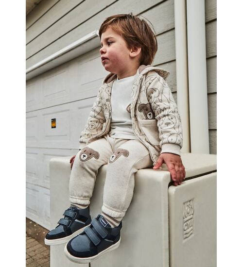 Teplejší městská tepláková souprava pro miminka a batolata od módní dětské značky Mayoral. Mikina a dvoje tepláčky s extra odolnými koleny.