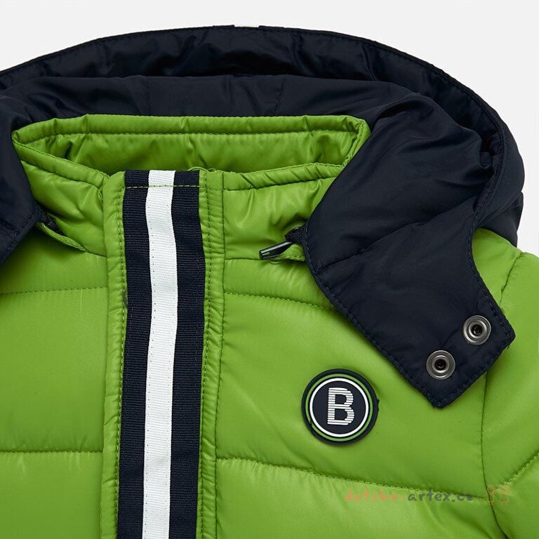 Zimní bunda ve velikosti 80 a 86 v krásném sportovním designu pro malé klučiny od výrobce Mayoral. Hřejivá prošívaná bundička s odepínací kapucí v kombinaci zelené a modré barvy bude slušet každému chlapečkovi.